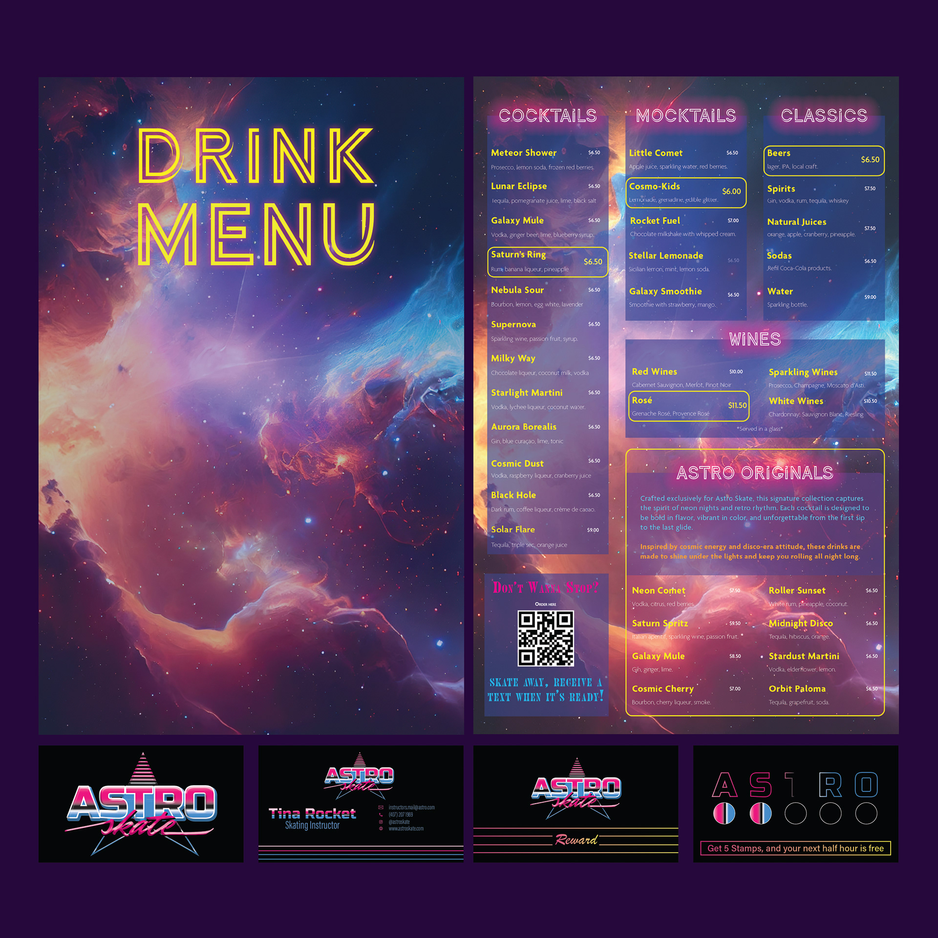 Astro Skate is a retro-inspired roller rink and arcade concept that blends high-energy entertainment with the nostalgic atmosphere of the 1980s. Featuring roller skating, classic arcade games, craft cocktails, and a vibrant social environment, the venue recreates the excitement of vintage skating culture for a modern audience.